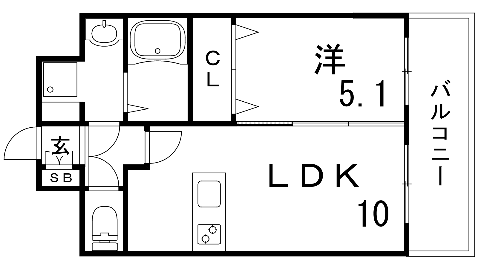 - 洋室5.1帖、LDK10帖