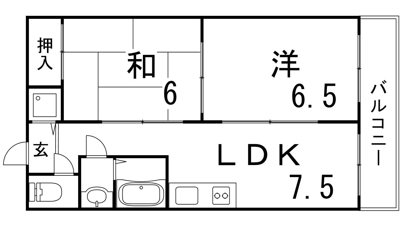 - LDK7.5帖、和室6帖、洋室6.5帖