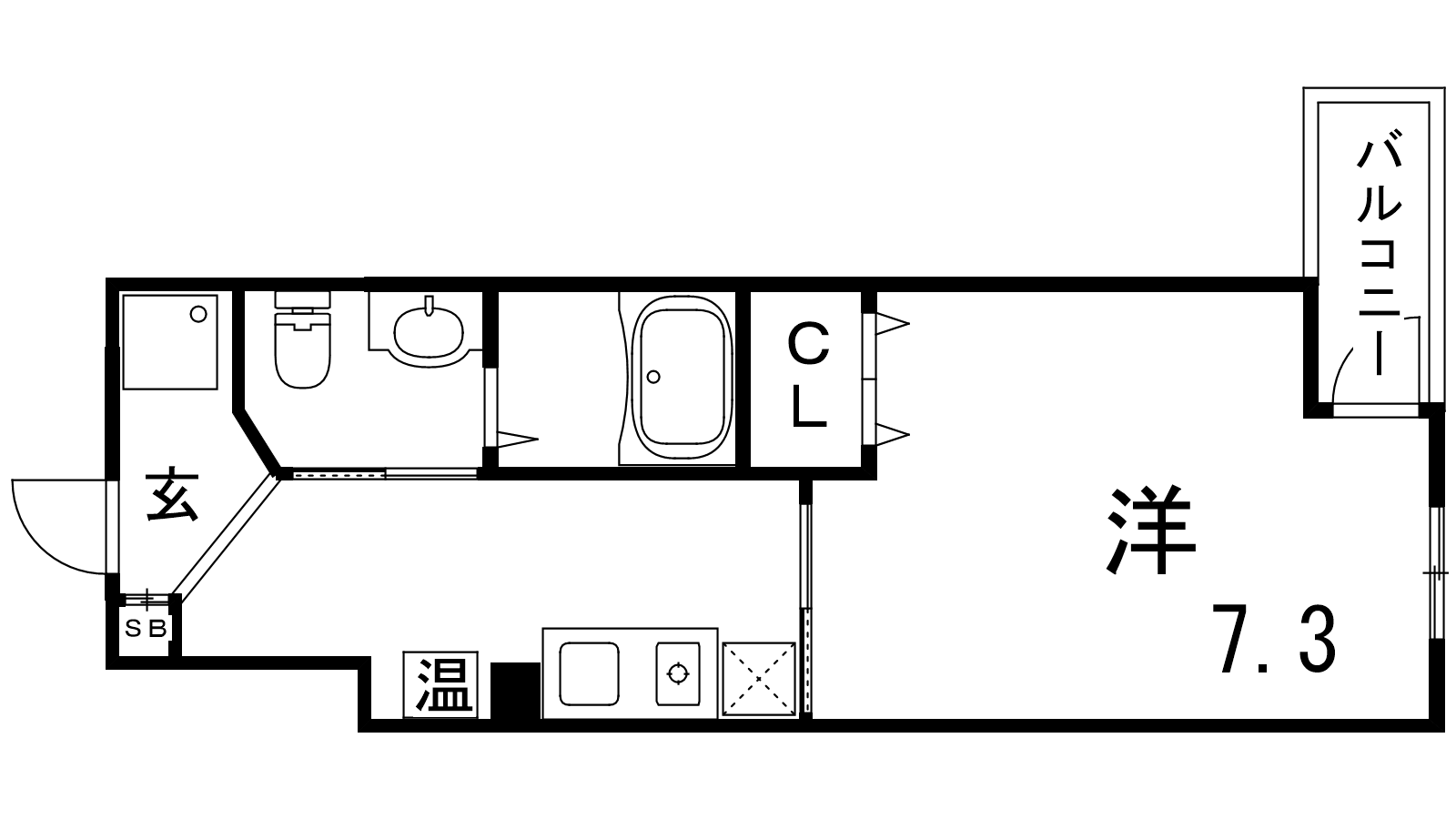 - K2帖、洋室7.3帖