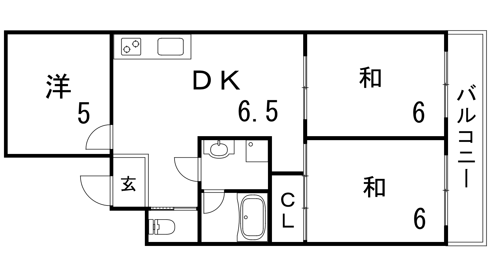 - DK6.5帖、洋室5帖、和室6帖、和室6帖