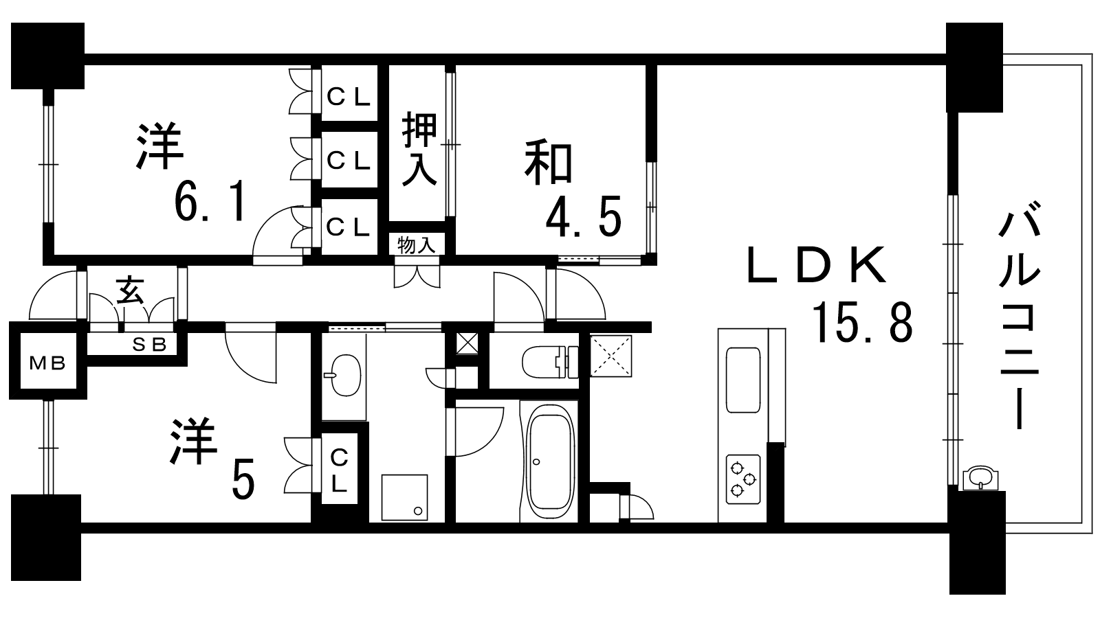 - LDK15.8帖、洋室6.1帖、洋室5帖、洋室4.5帖