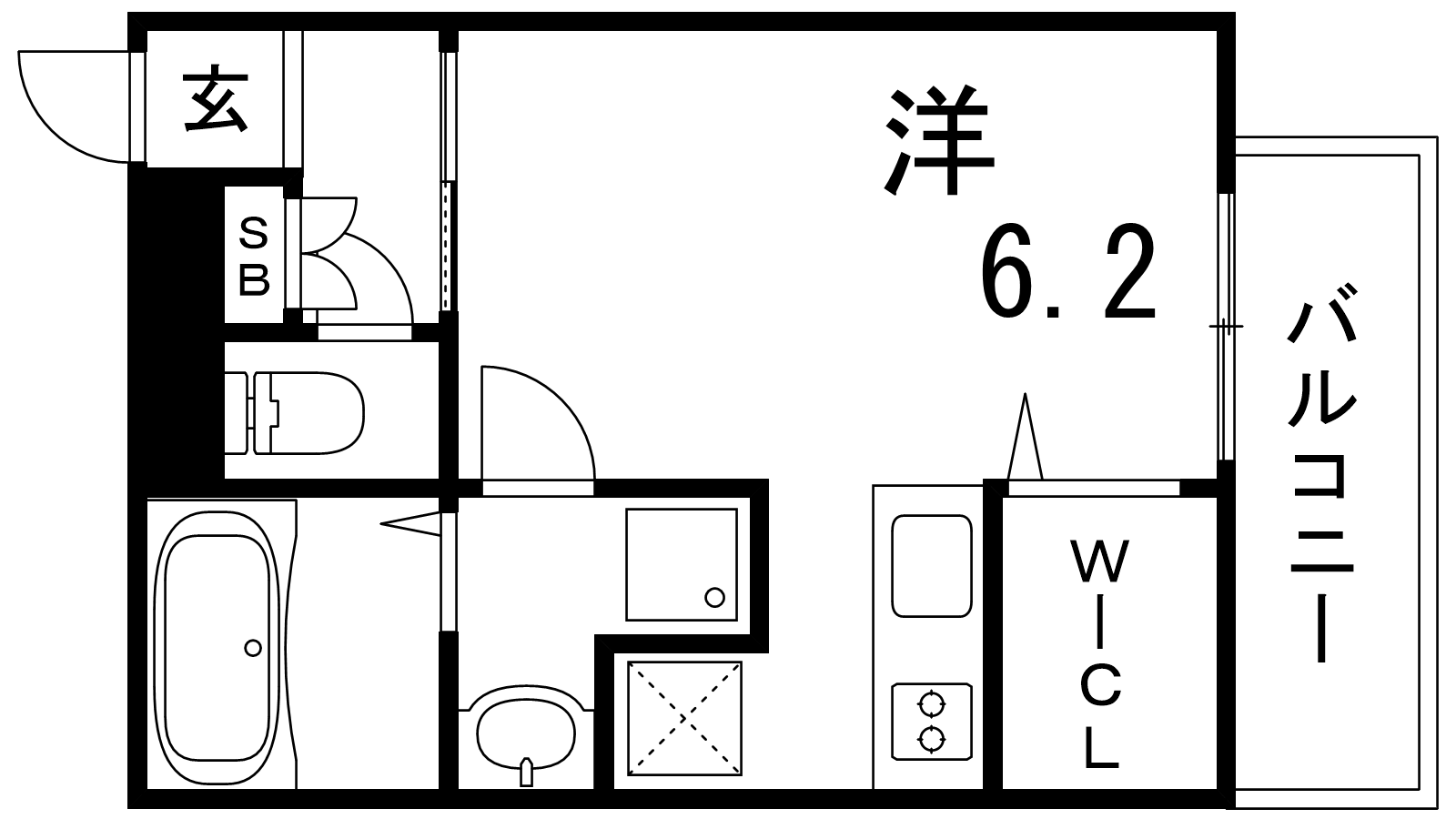 - K2帖、洋室6.2帖
