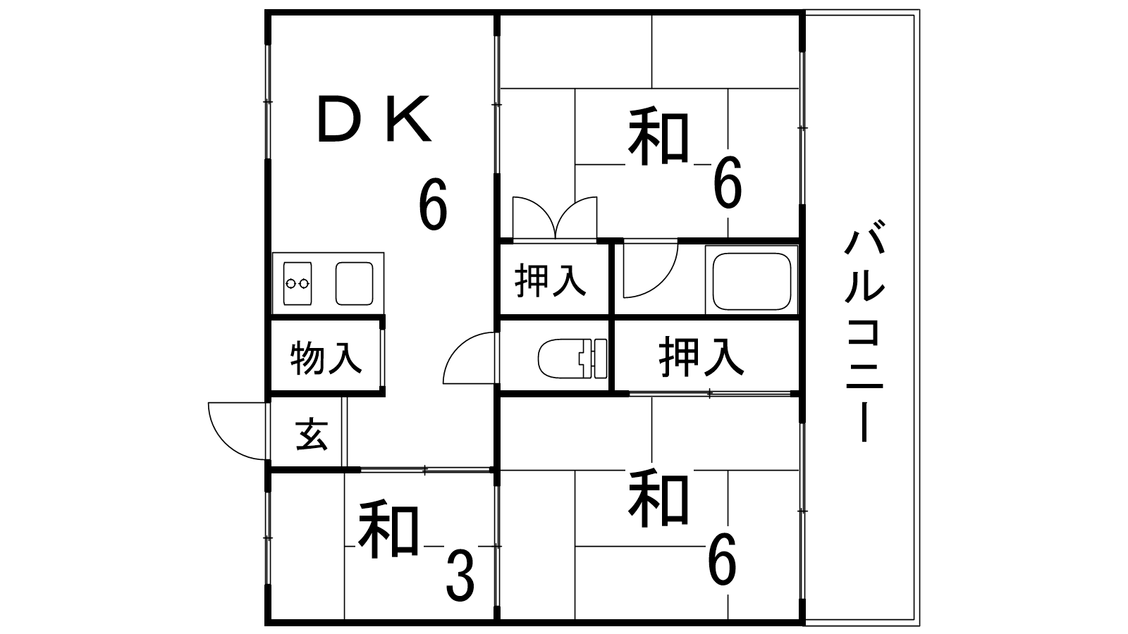 - DK6帖、和室6帖、和室6帖、和室3帖