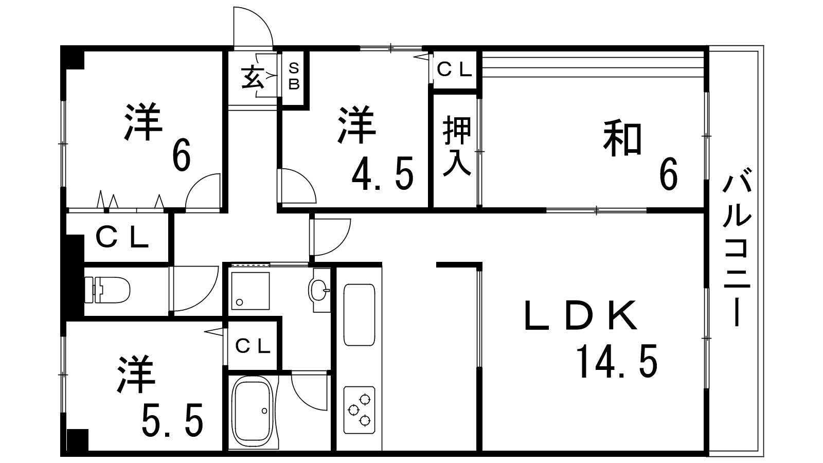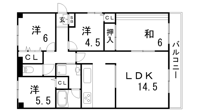 - LDK14.5帖、洋室6帖、洋室5.5帖、洋室4.5帖、和室6帖