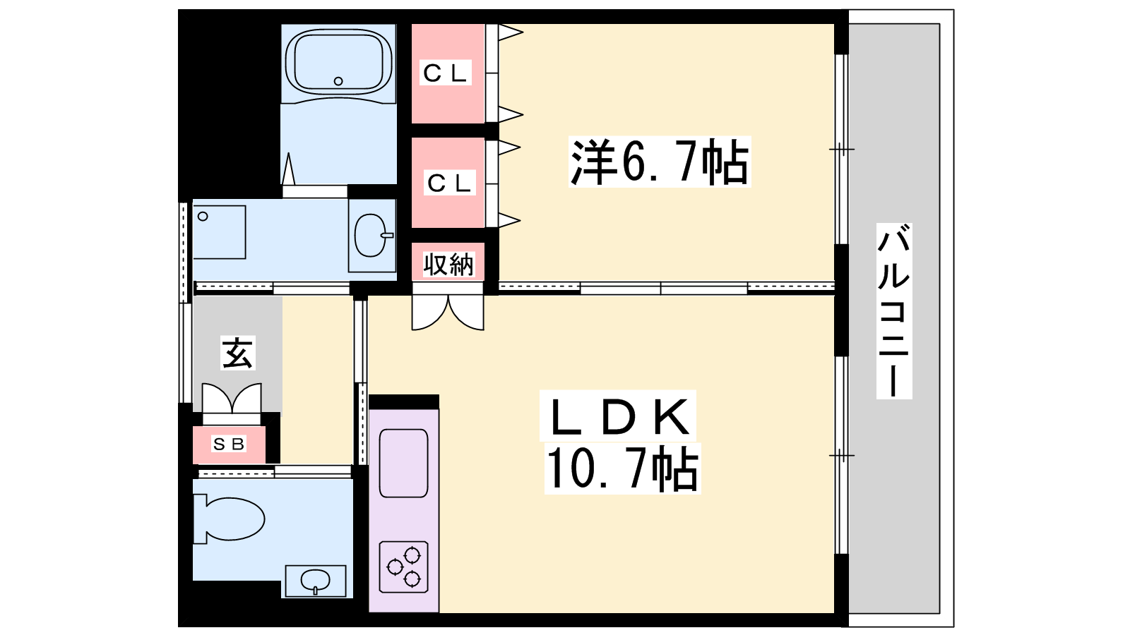 - LDK10.7帖、洋室6.7帖