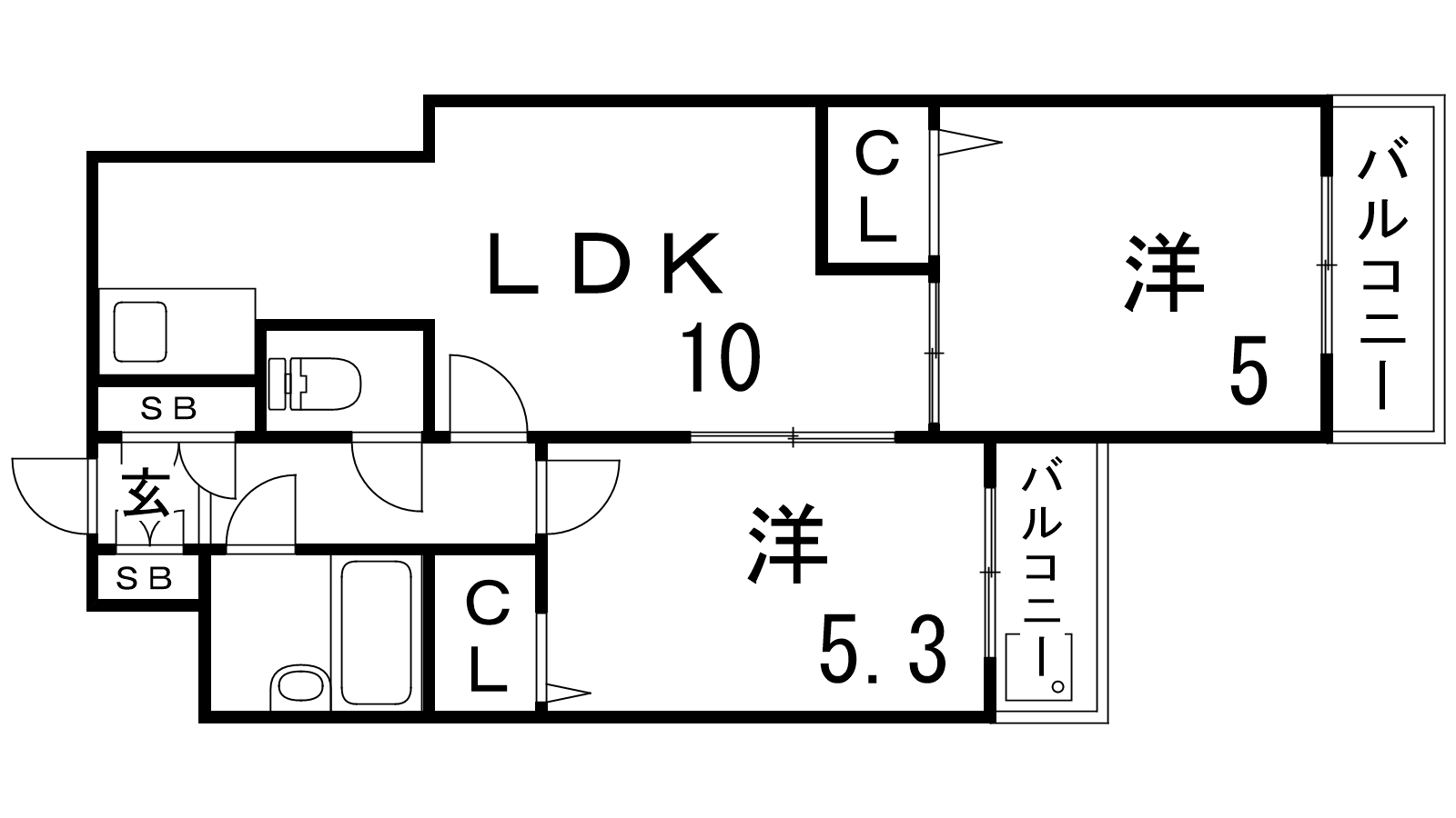 - LDK10帖、洋室5.3帖、洋室5帖