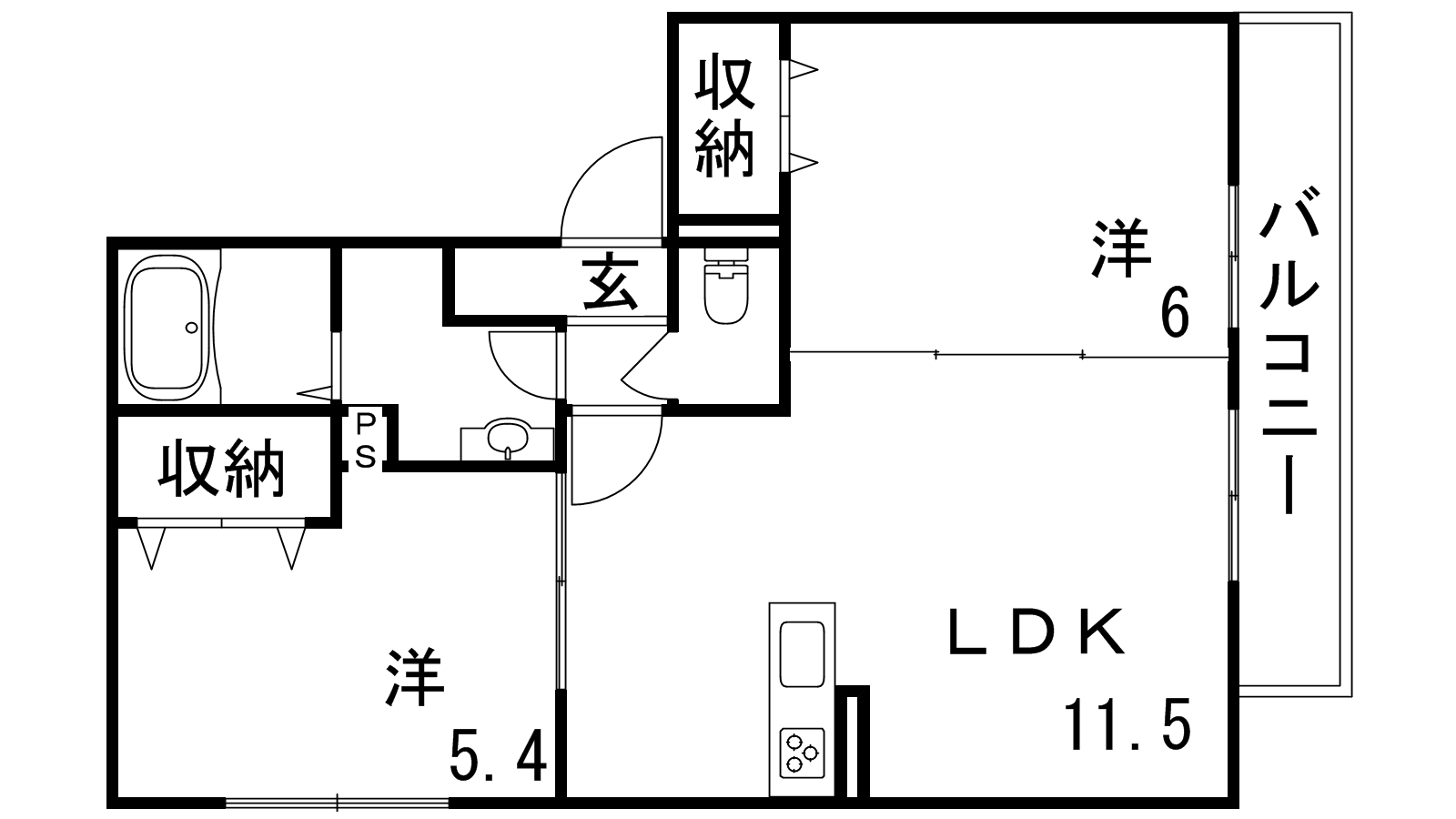 - LDK11.5帖、洋室6帖、洋室5.4帖