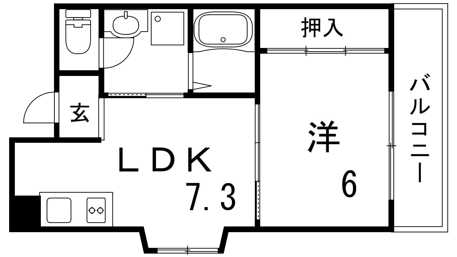 - LDK7.3帖、洋室6帖