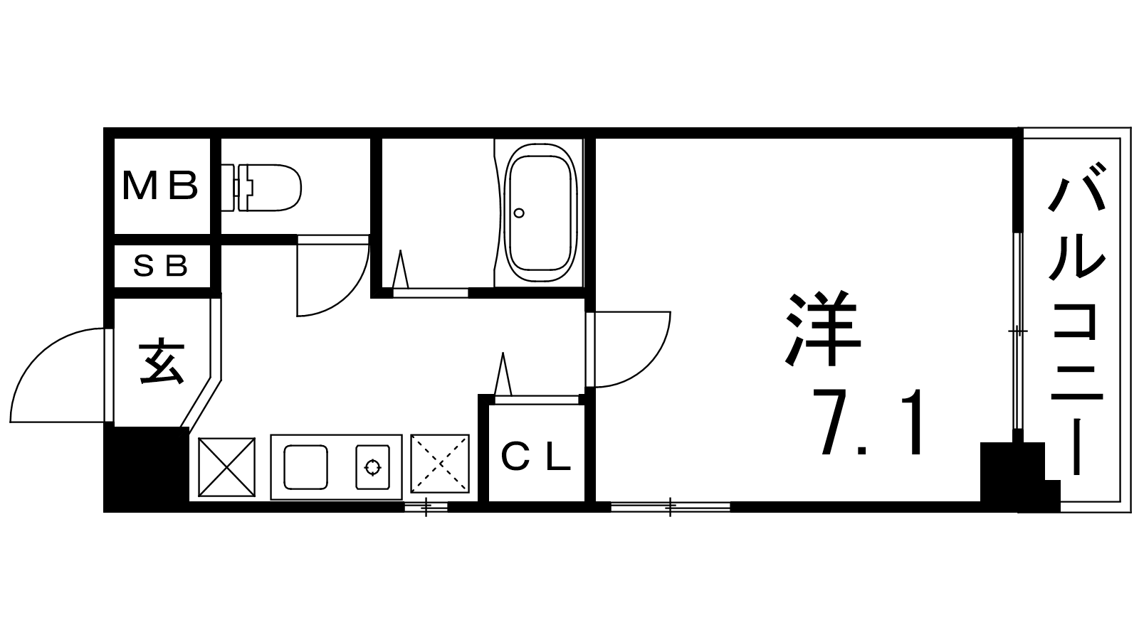 - K2帖、洋室7.1帖
