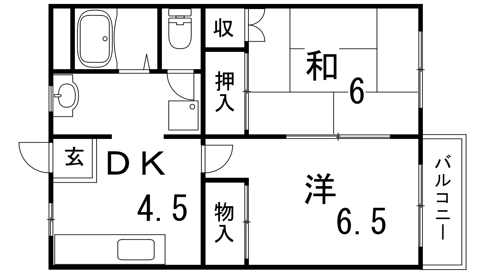 - DK4.5帖、洋室6.5帖、洋室6帖