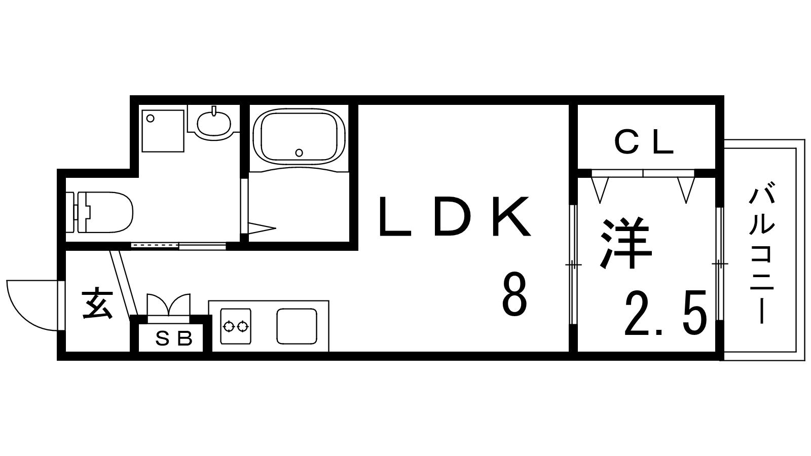 - LDK8帖、洋室2.5帖