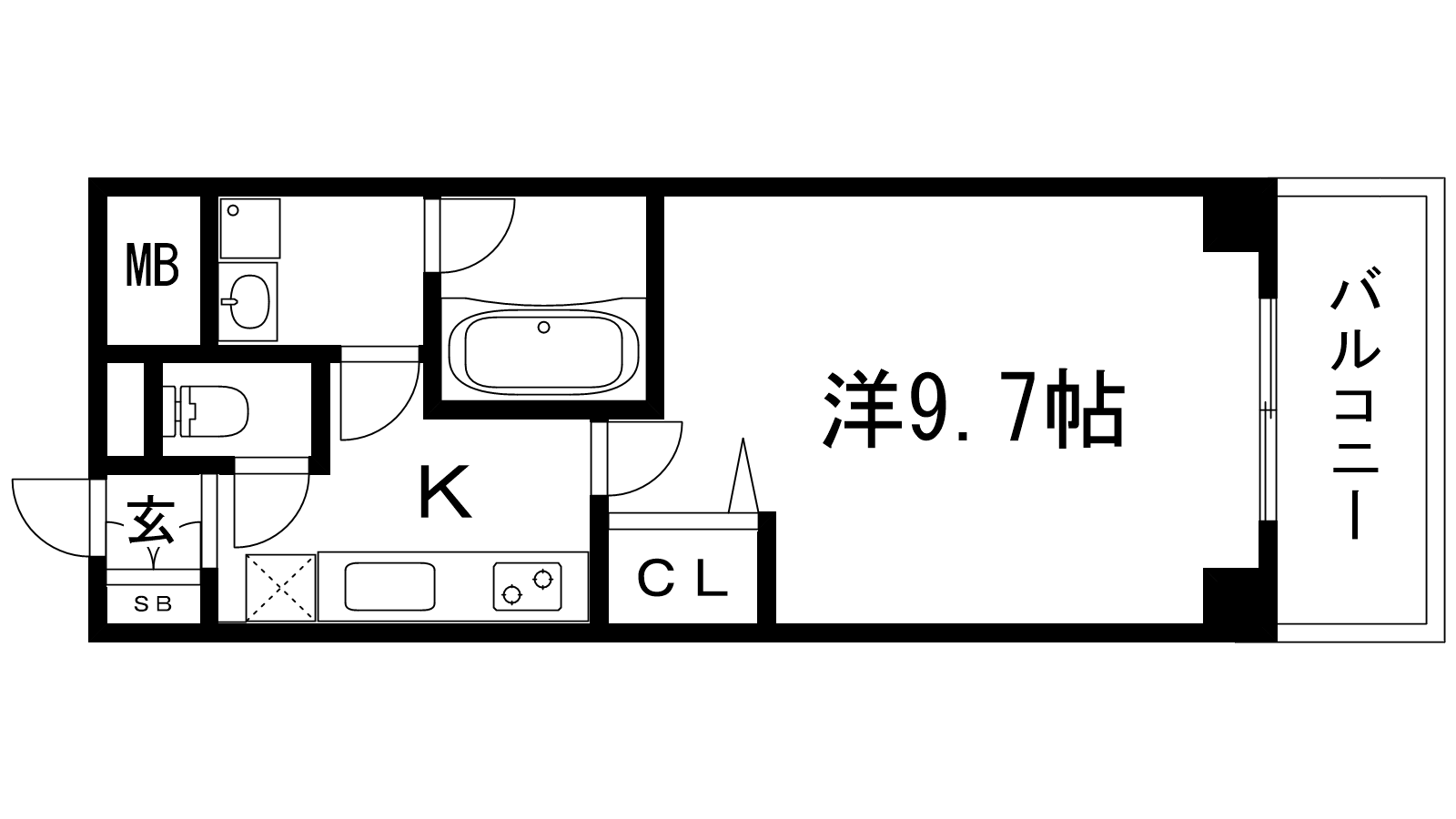 - K2.5帖、洋室9.7帖