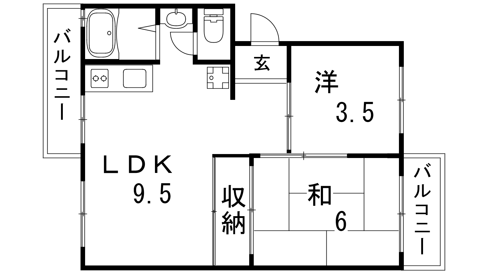 - LDK9.5帖、洋室3.5帖、和室6帖