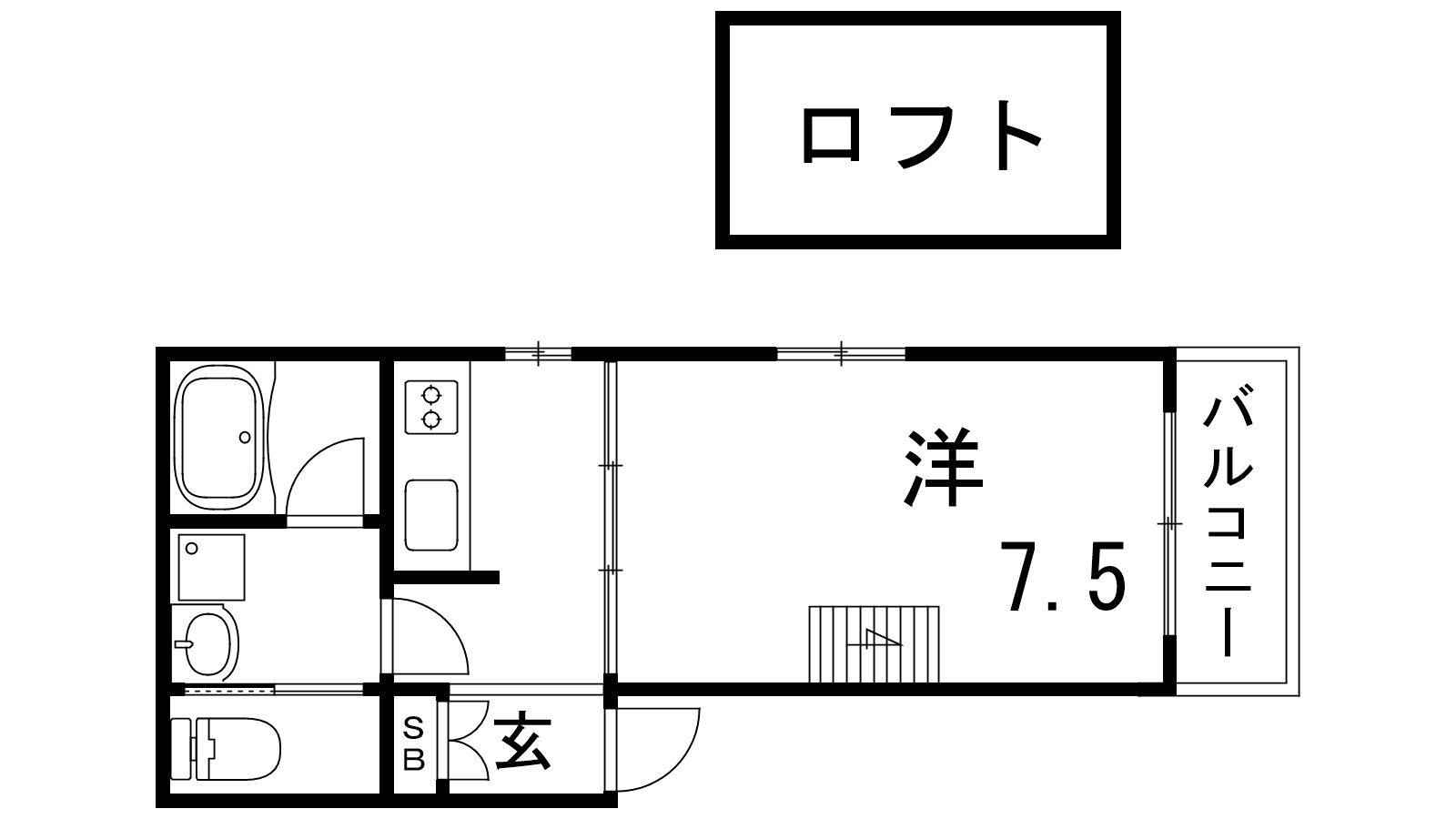- K2帖、洋室7.5帖