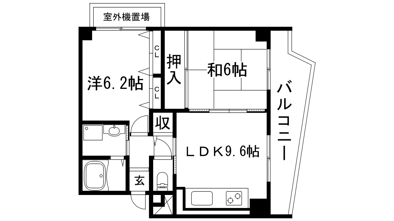 - LDK9.6帖、洋室6.2帖、和室6帖