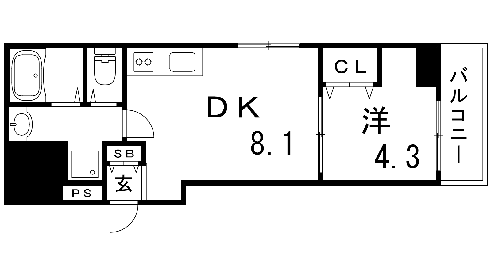 - 洋室4.3帖、DK8.1帖
