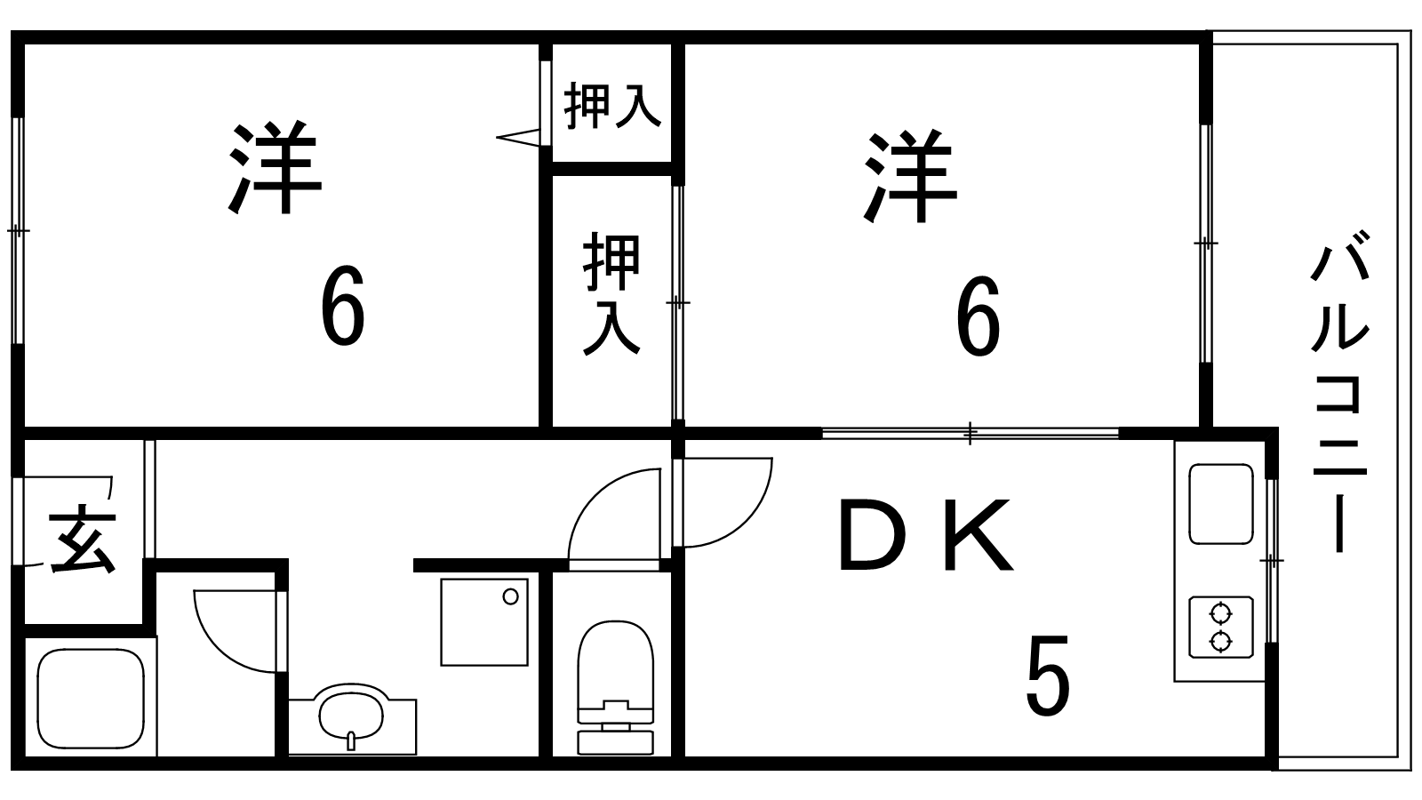 - DK5帖、洋室6帖、洋室6帖