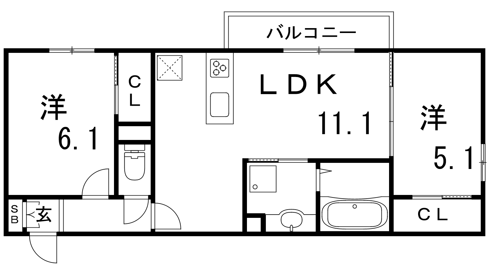 - LDK11.1帖、洋室6.1帖、洋室5.1帖