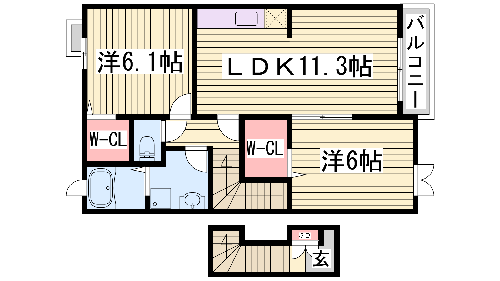 - LDK11.3帖、洋室6帖、洋室6.1帖