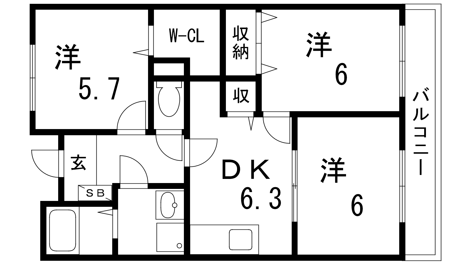 - DK6.3帖、洋室6帖、洋室5.7帖、洋室6帖