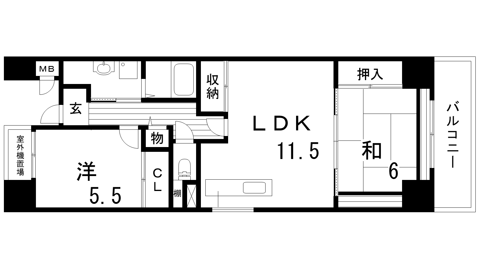- LDK11.5帖、洋室5.5帖、和室6帖