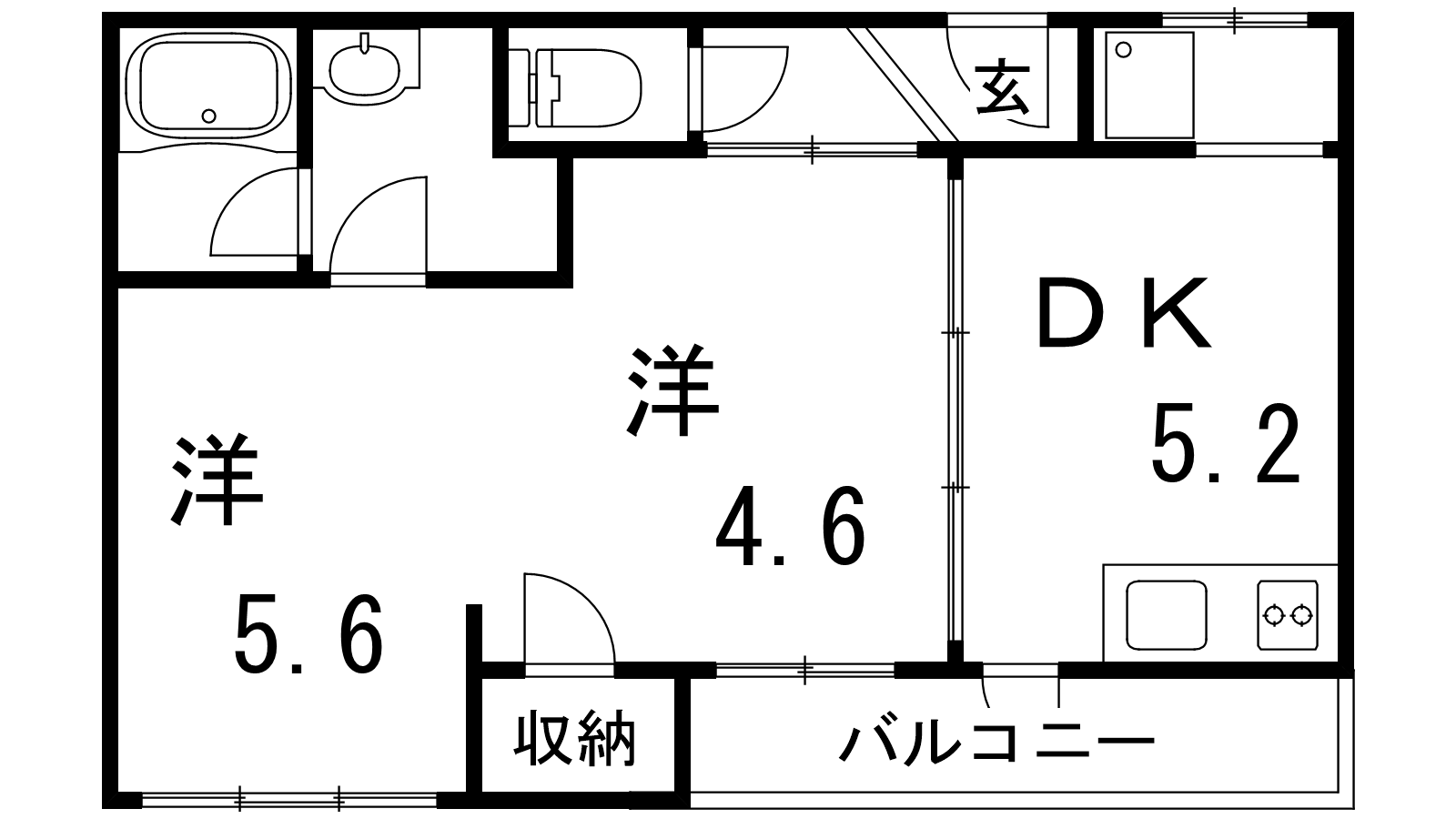- DK5.2帖、洋室4.6帖、洋室5.6帖