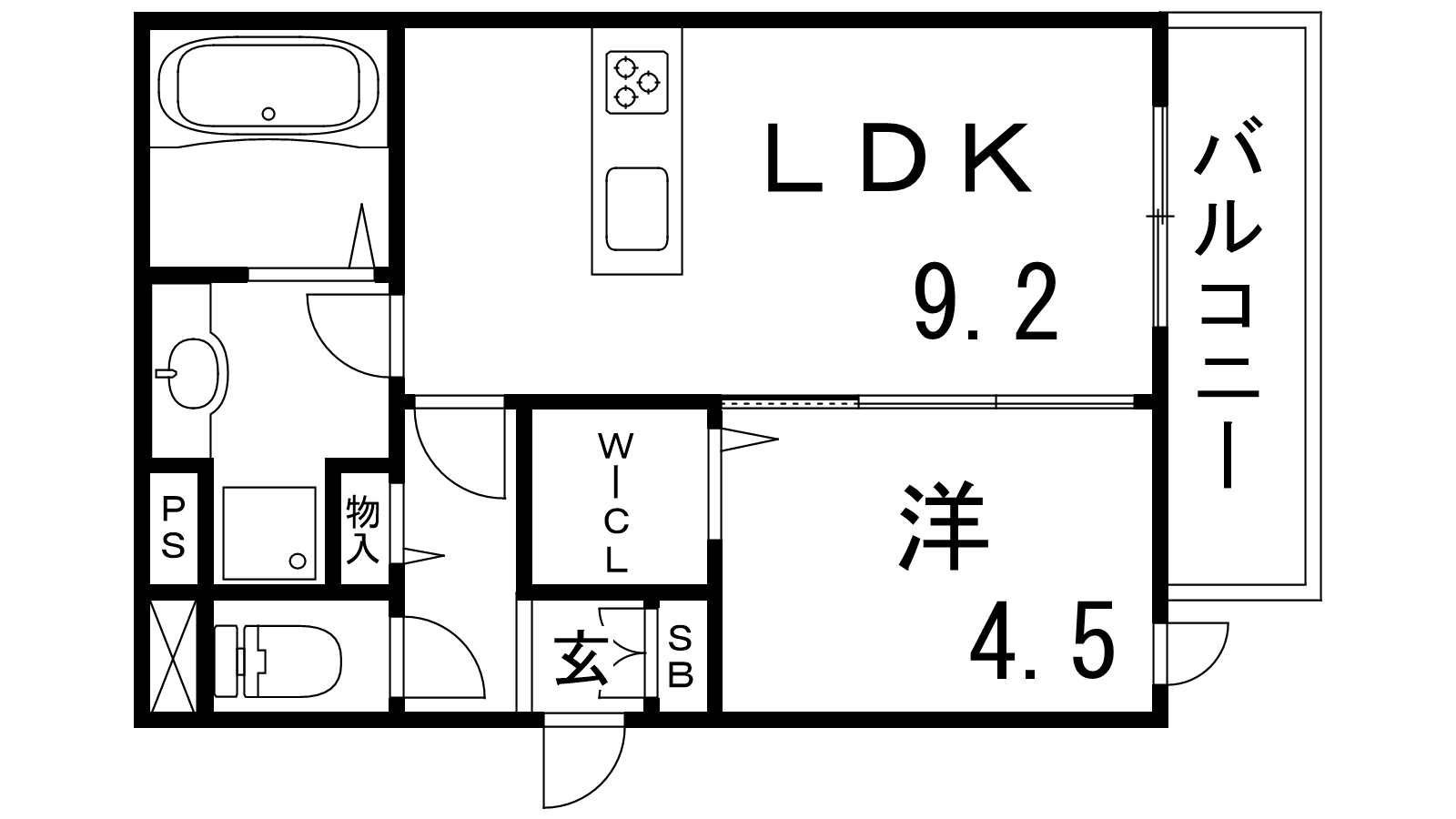 - LDK9.2帖、洋室4.5帖