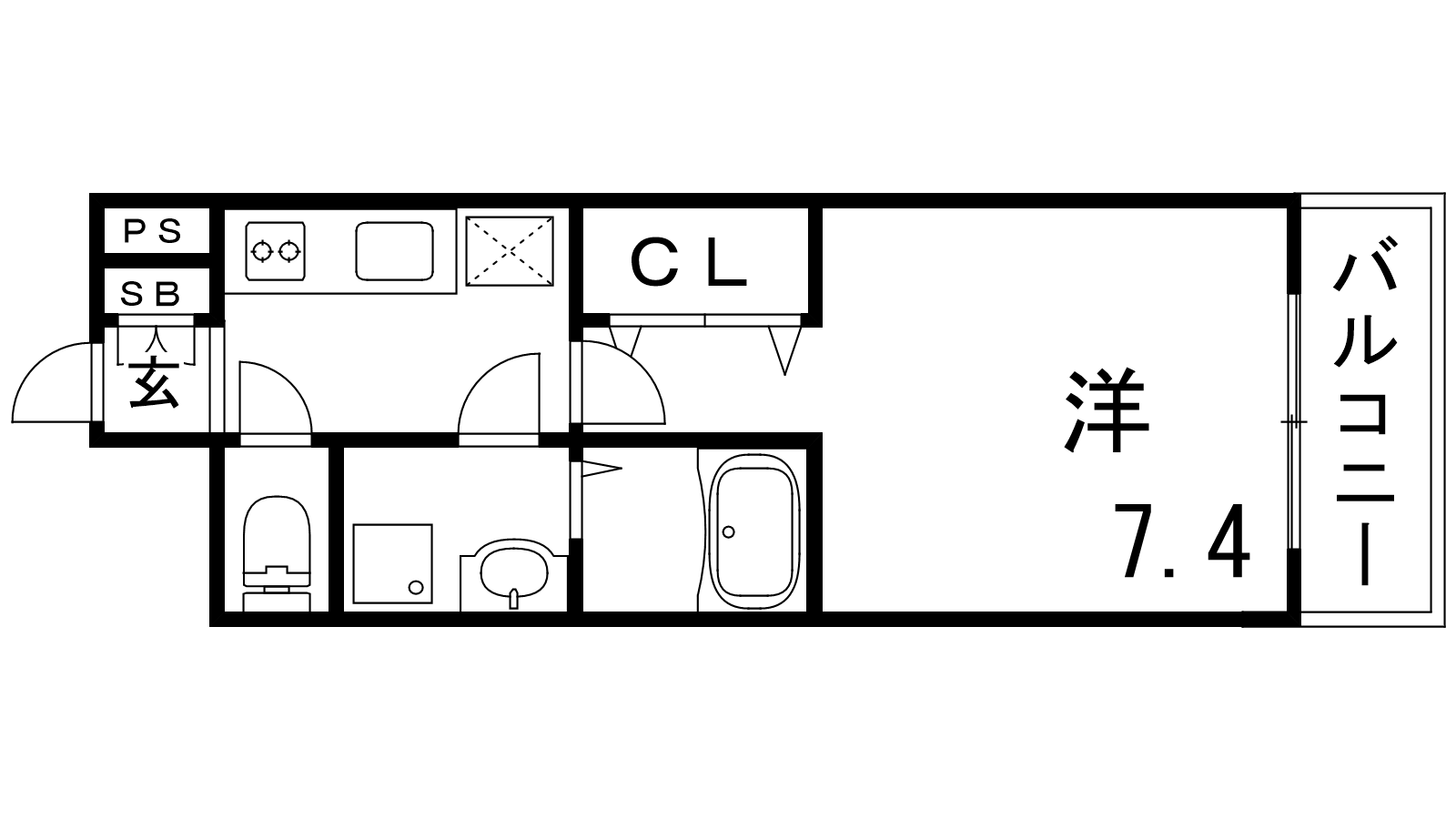- K2帖、洋室7.4帖