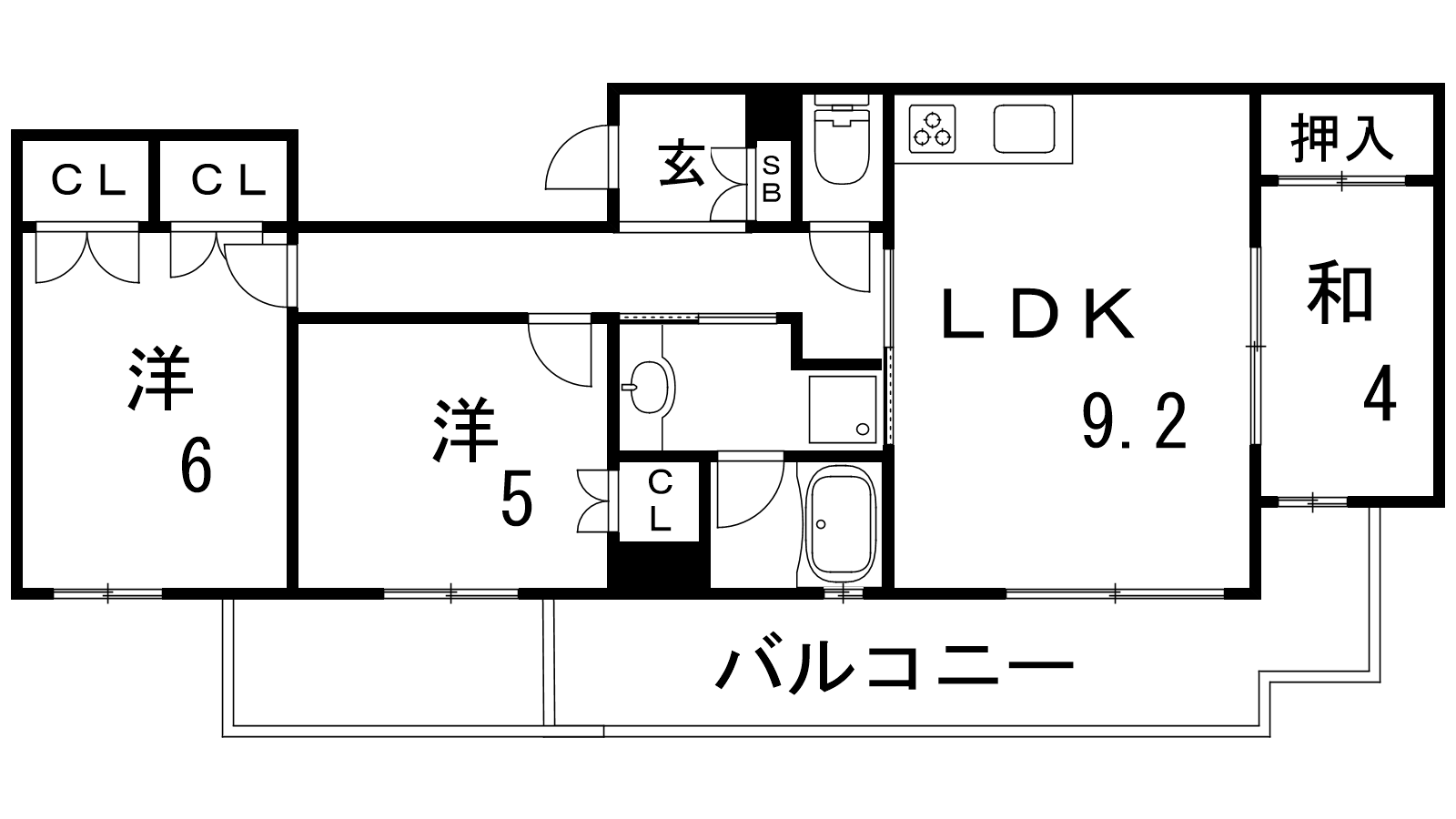 - LDK9.2帖、洋室6帖、洋室5帖、和室4帖