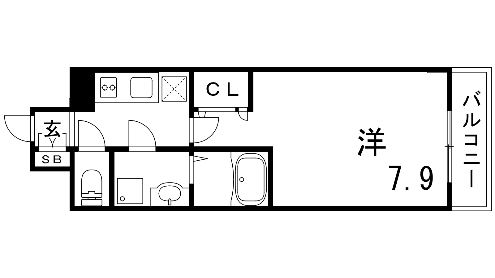 - K2帖、洋室7.9帖