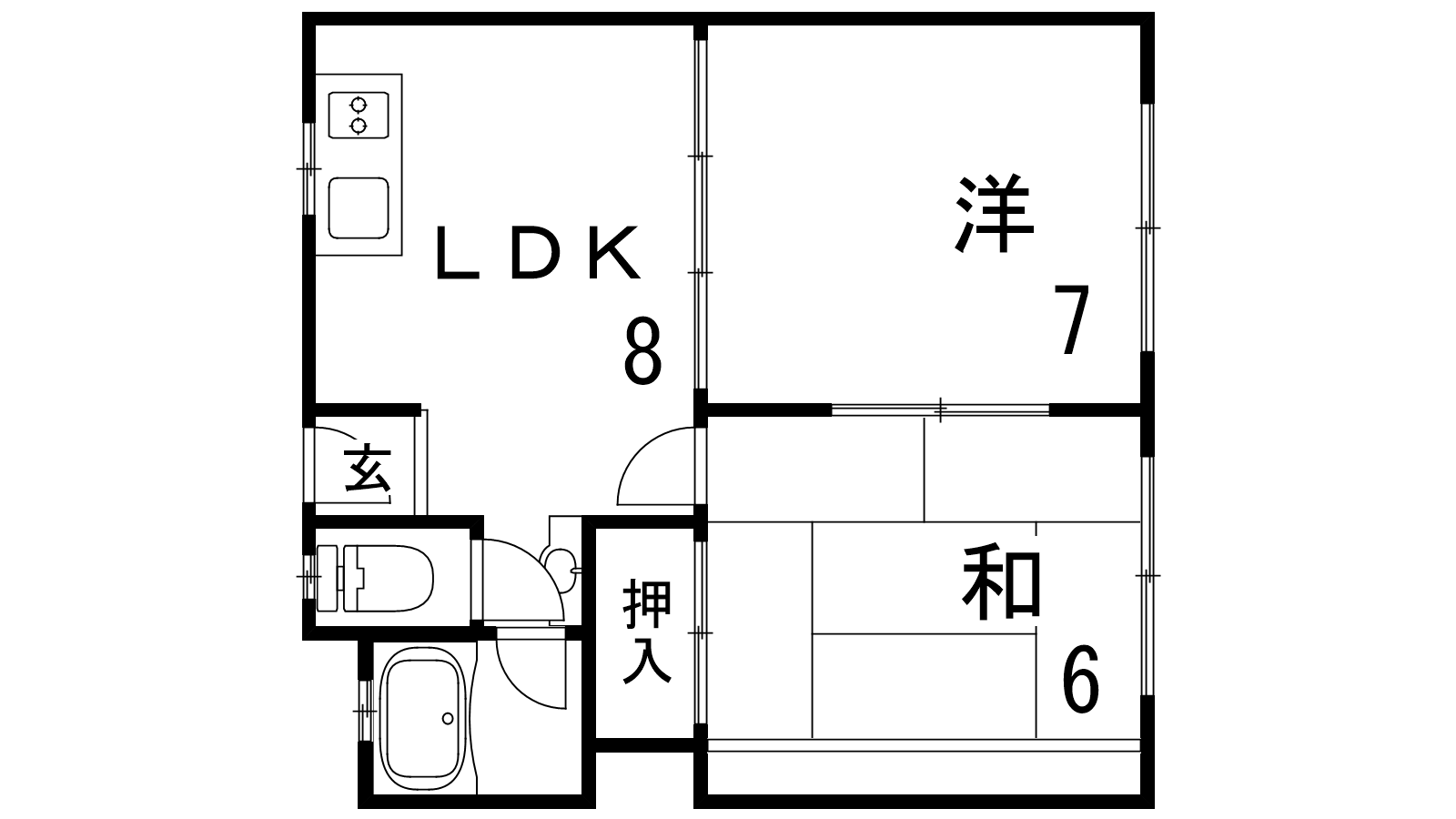 - LDK8帖、洋室7帖、和室6帖