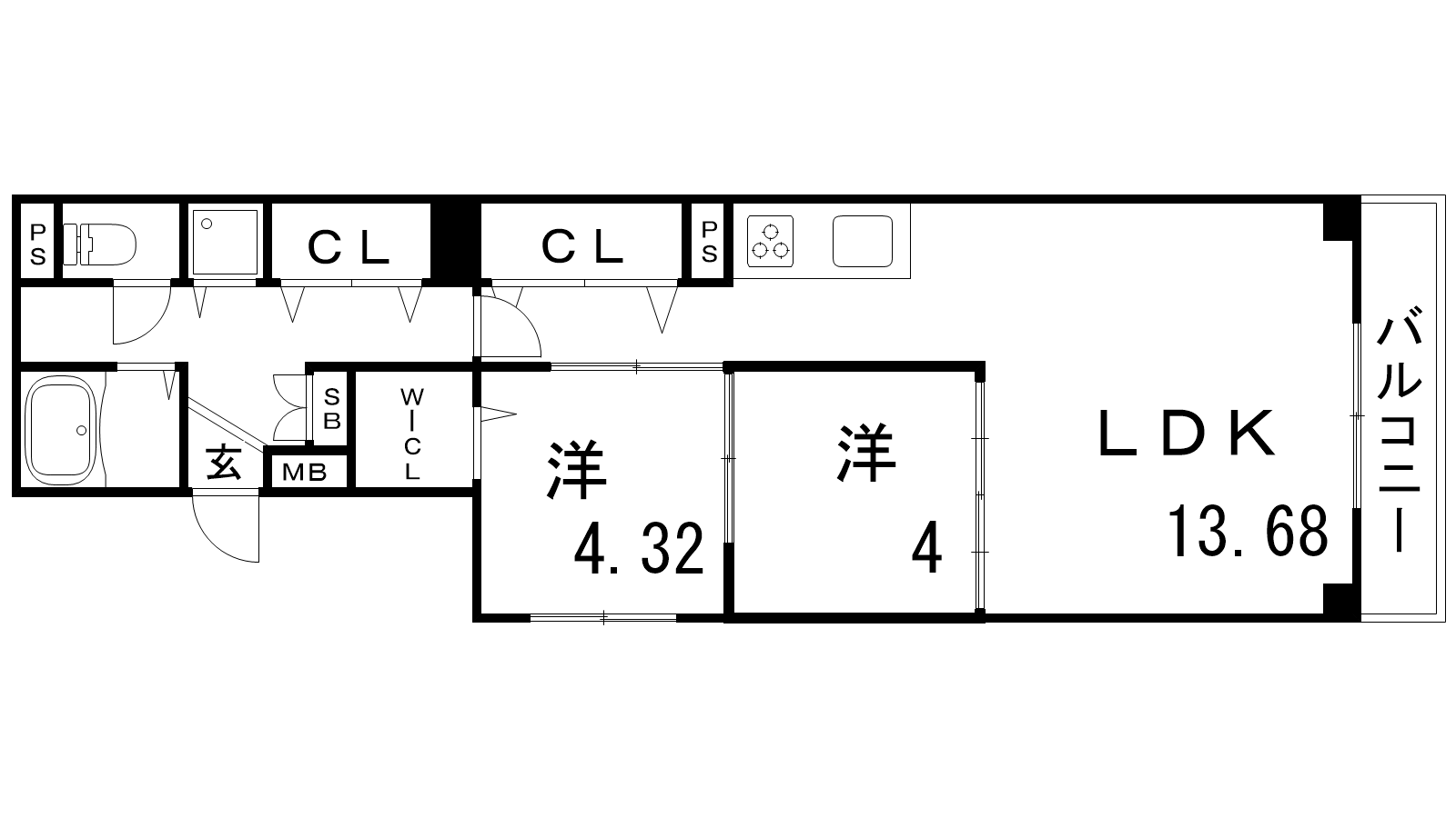 - LDK13.68帖、洋室4.32帖、洋室4帖