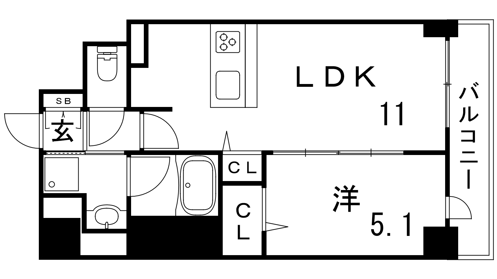 - LDK11帖、洋室5.1帖