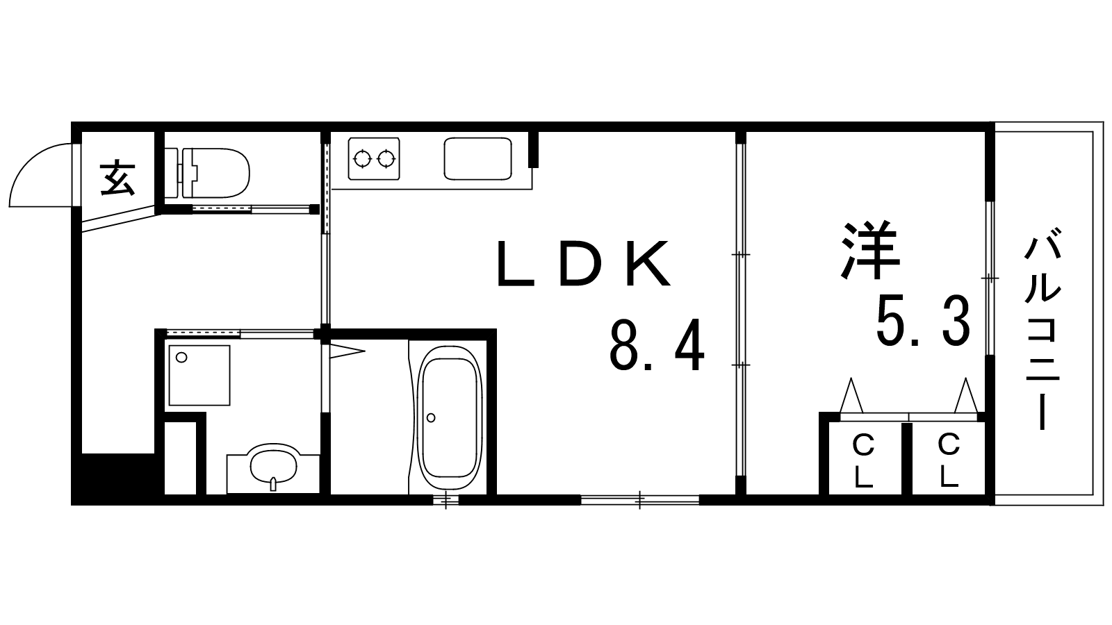 - LDK8.4帖、洋室5.3帖