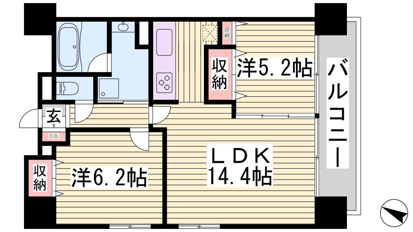 - LDK14.4帖、洋室6.2帖、洋室5.5帖