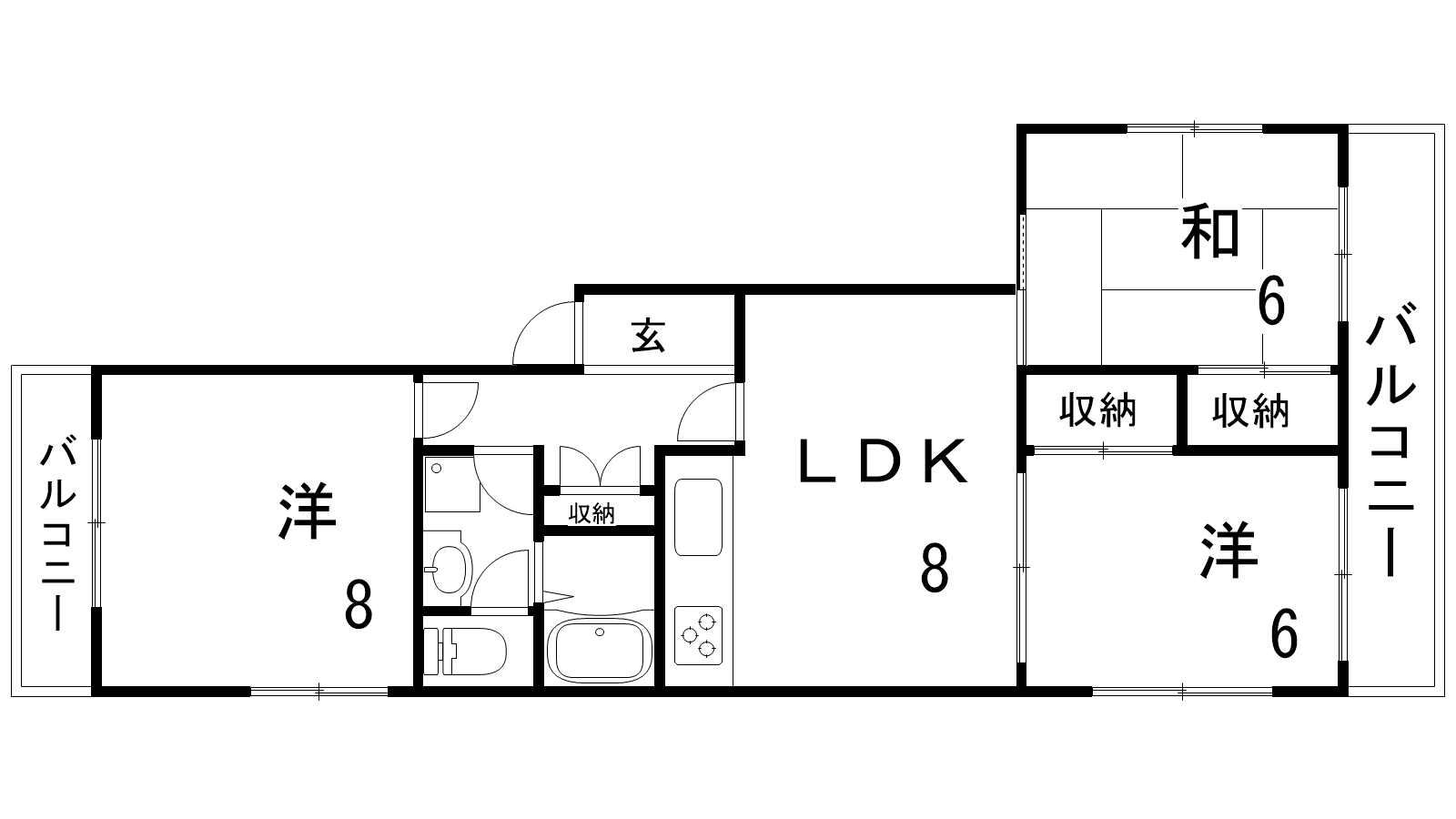 - LDK8帖、和室6帖、洋室6帖、洋室8帖