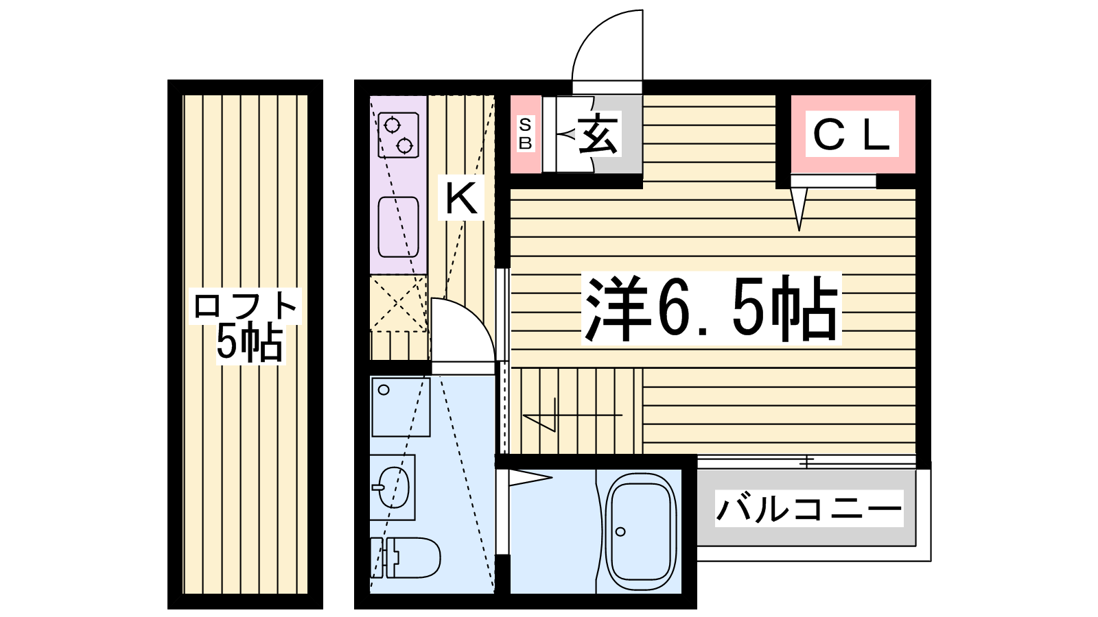 - K2帖、洋室6.5帖