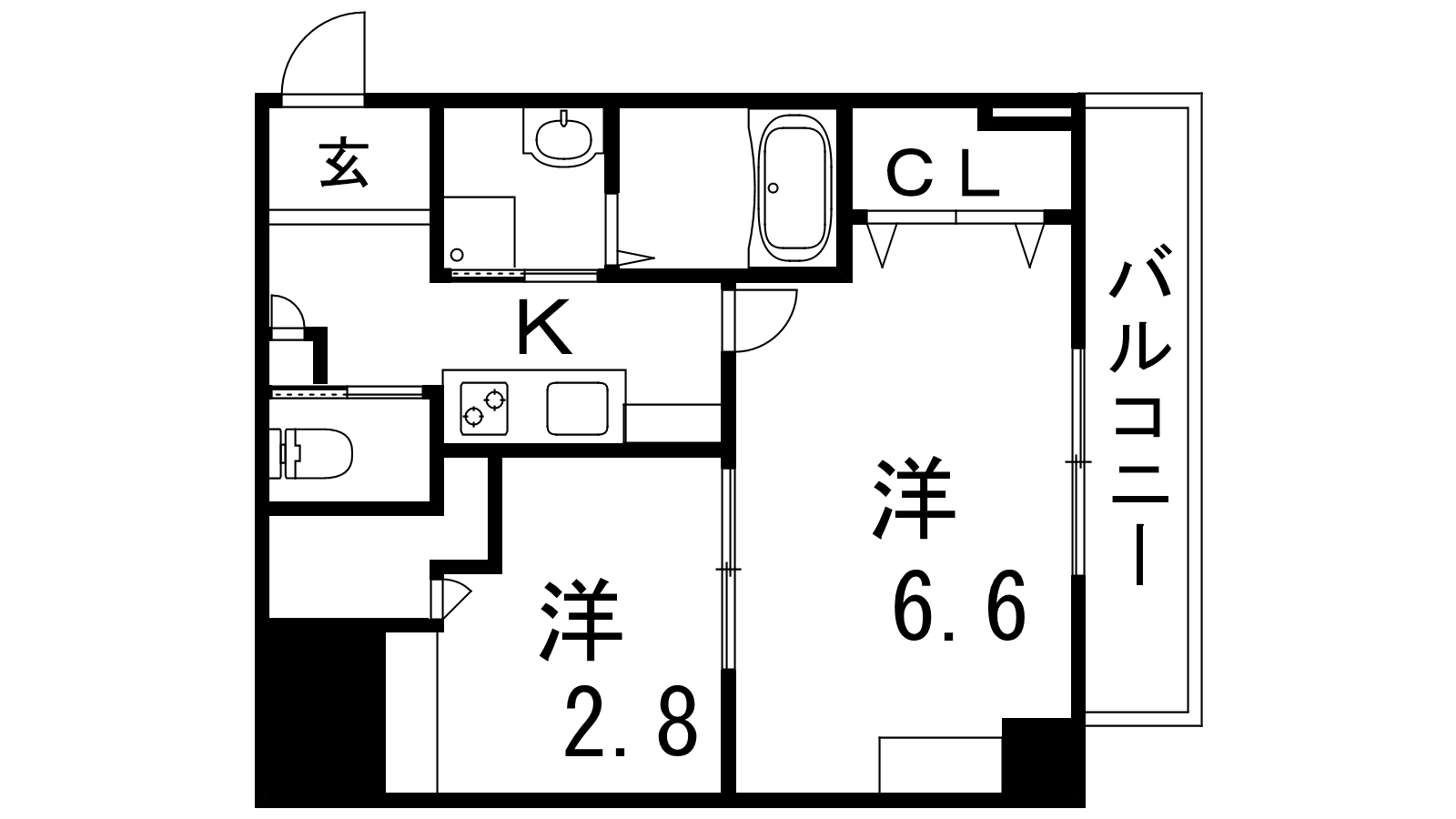 - 洋室6.6帖、洋室2.8帖