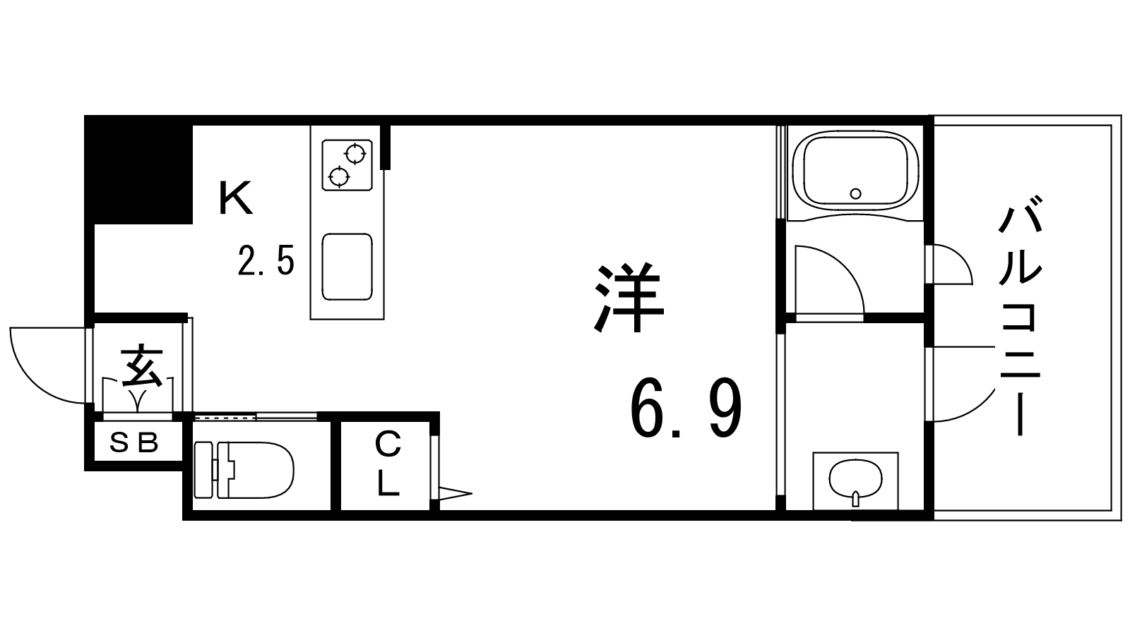 - K2.5帖、洋室6.9帖