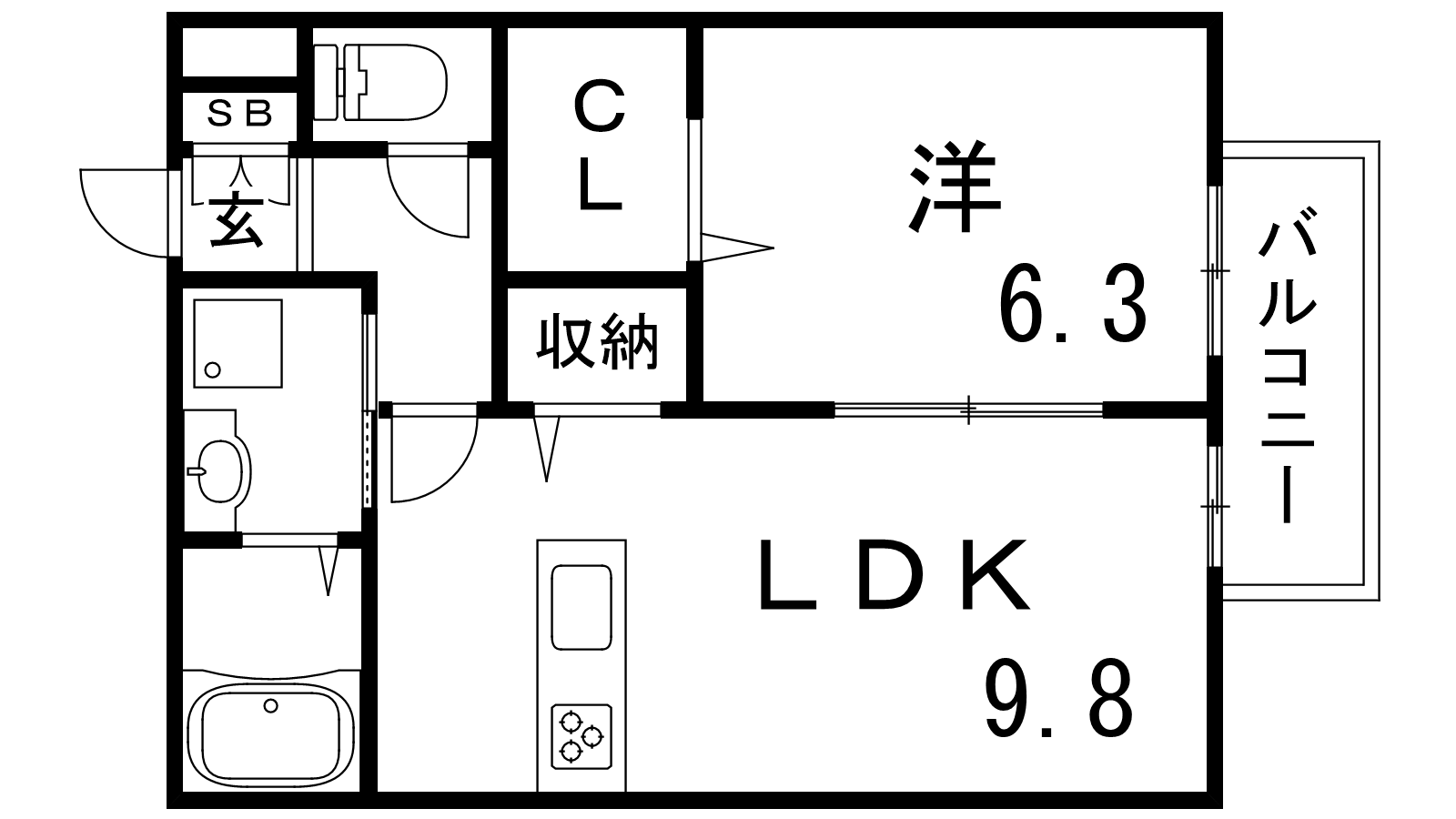 - LDK9.8帖、洋室6.3帖