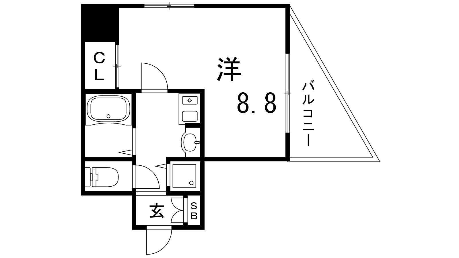 - K3帖、洋室8.8帖