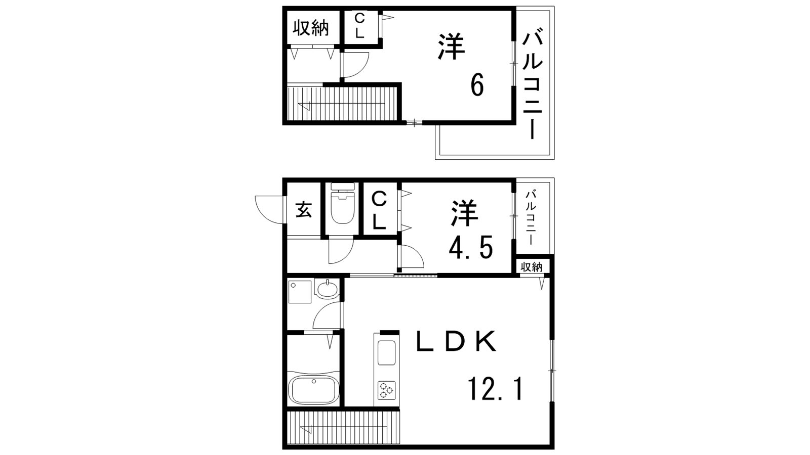 - LDK12.1帖、洋室6帖、洋室4.5帖