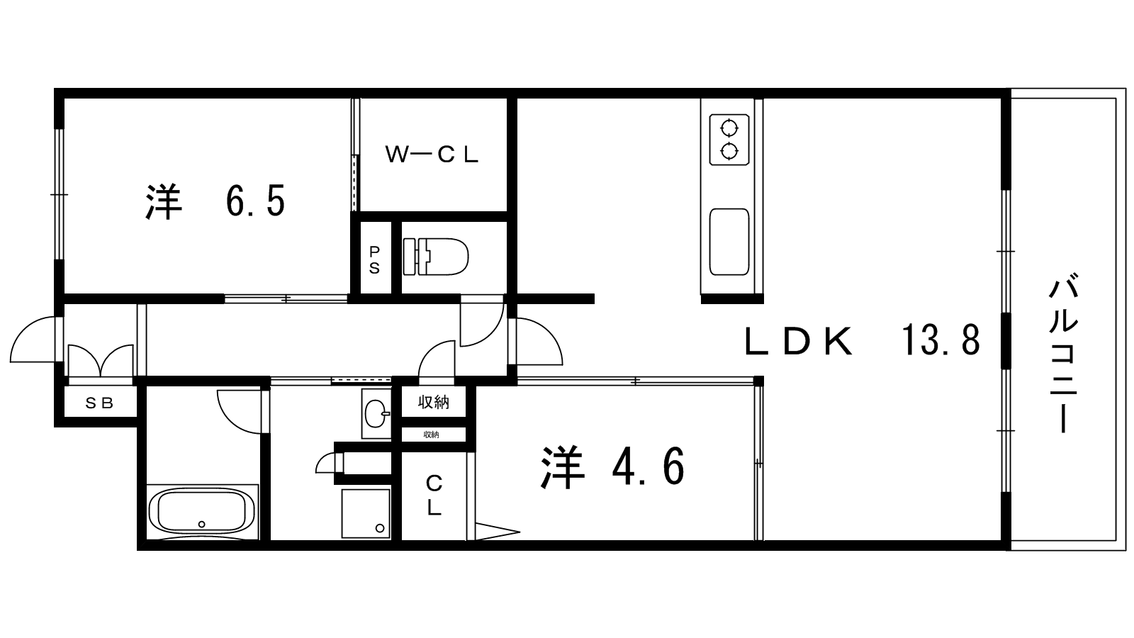 - 洋室4.6帖、LDK15.6帖、洋室5.5帖