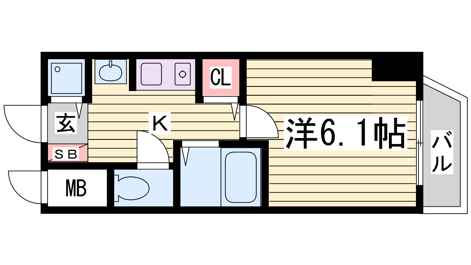 - K3帖、洋室6.1帖