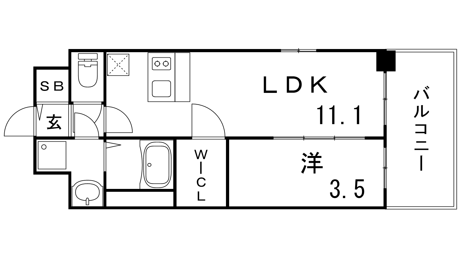 - 洋室3.5帖、LDK11.1帖