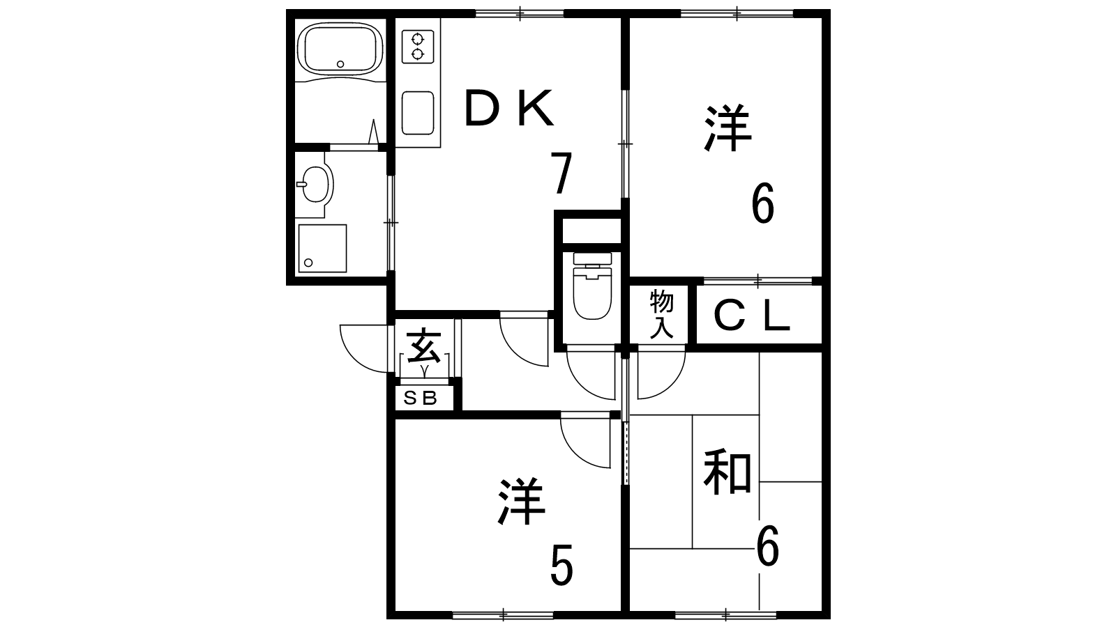 - DK7帖、洋室6帖、和室6帖、洋室5帖