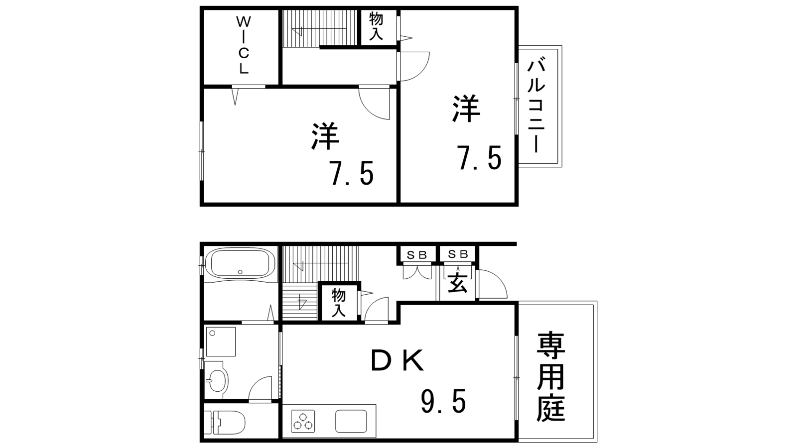 - LDK9.5帖、洋室7.5帖、洋室7.5帖
